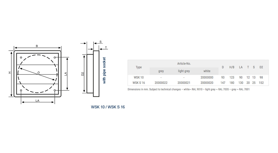 Dimensions in mm. Subject to technical changes – white~ RAL 9010 – light grey ~ RAL 7035