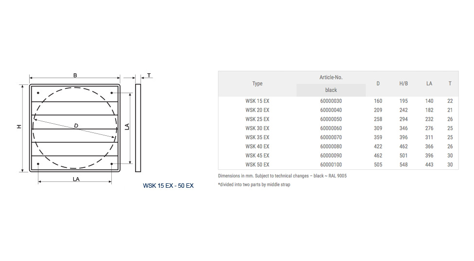 - Explosion-proofed shutters are also available in larger sizes as type WSK 70 EX – WSK 110 EX